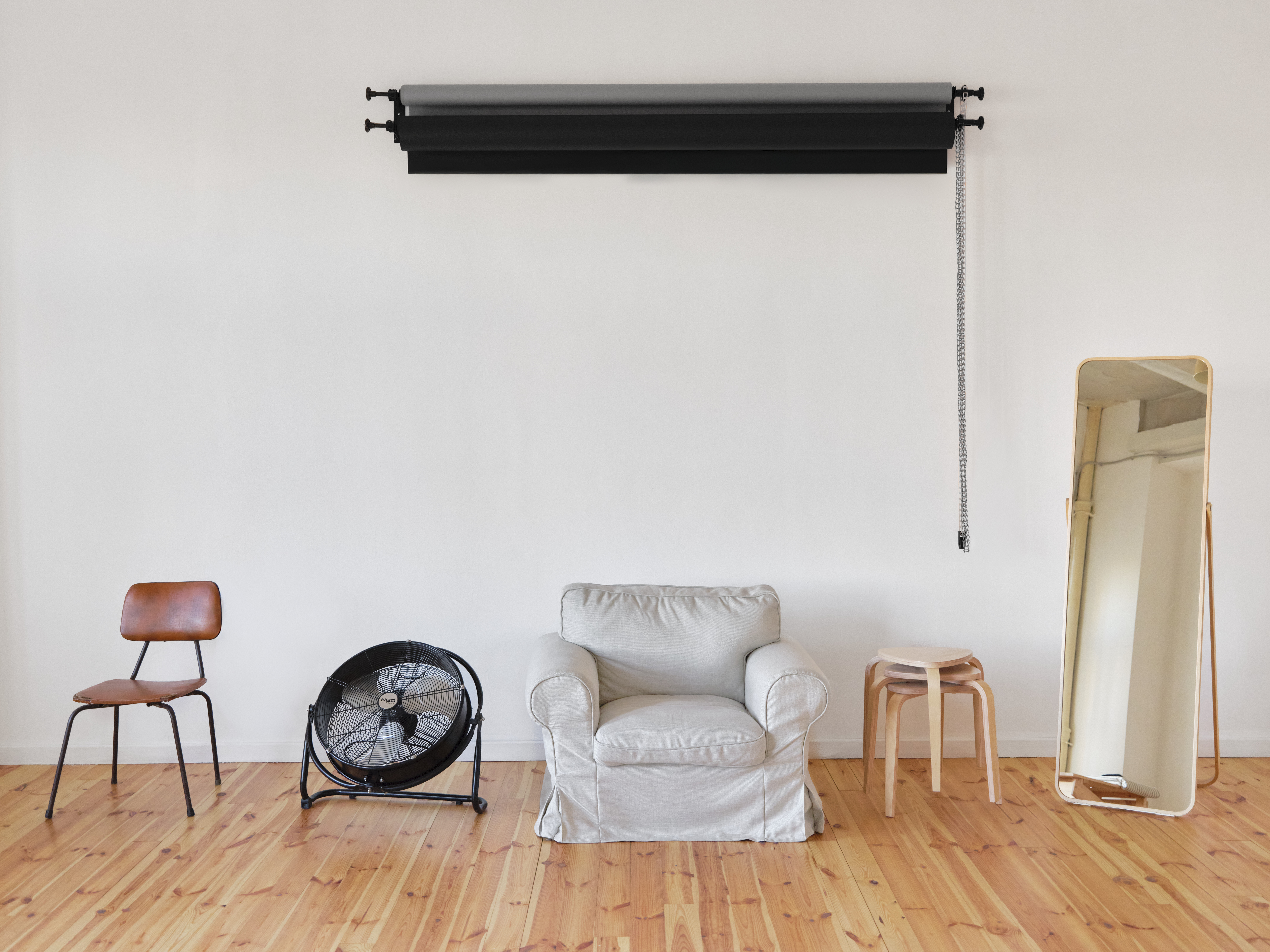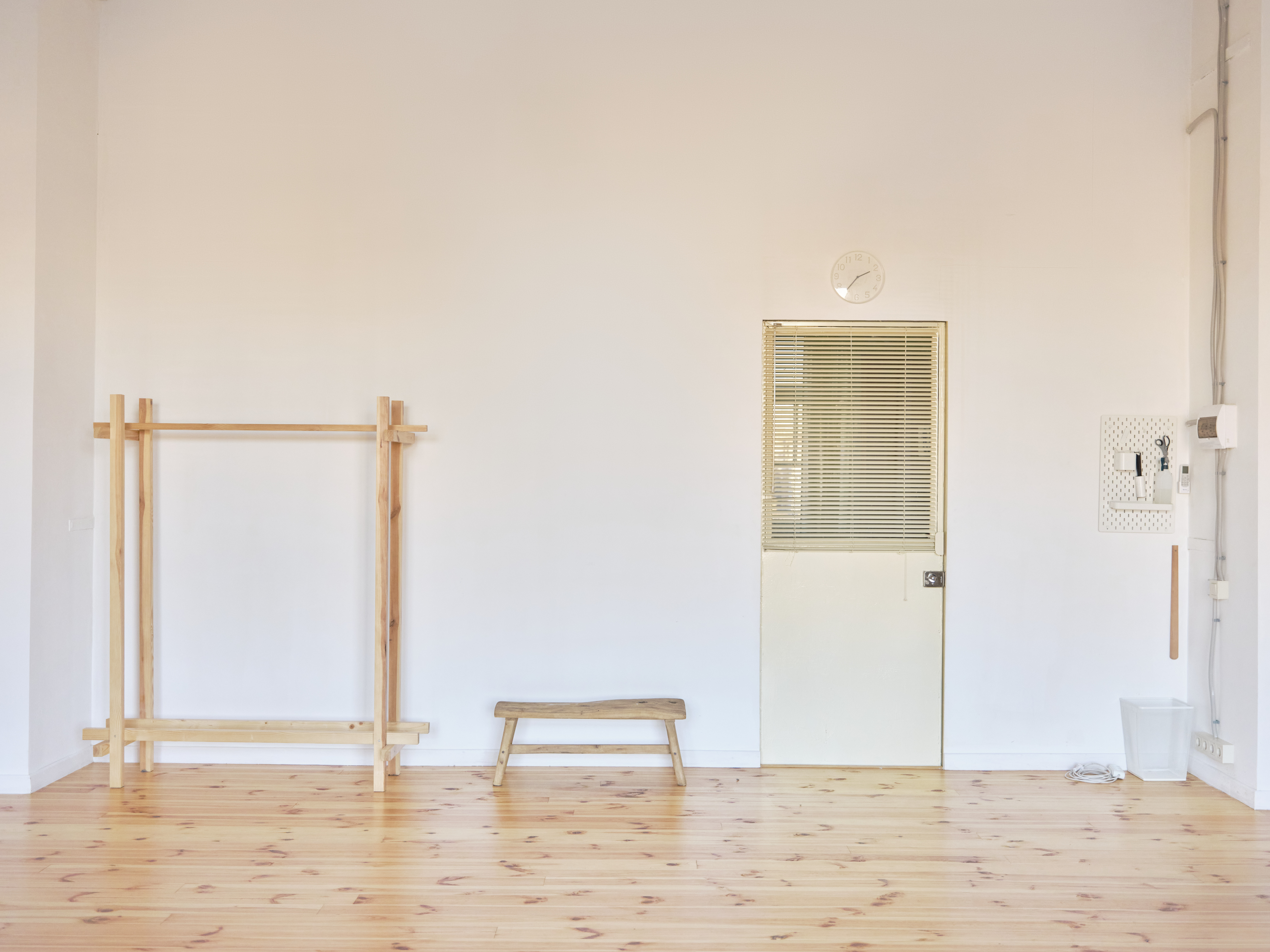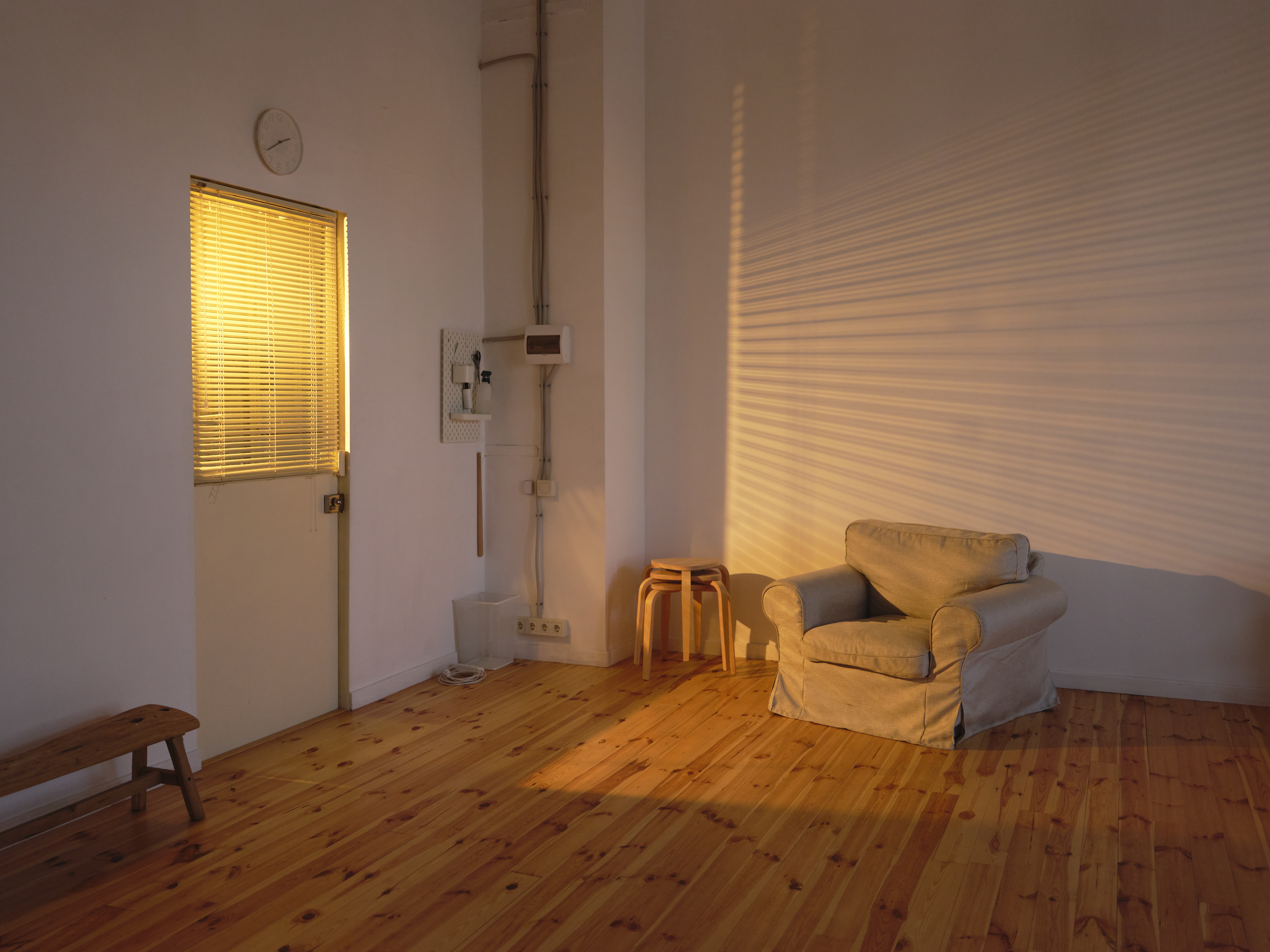 Зала з деревʼяною підлогою. 2 великих деревʼяних вікна, виходять на північ.